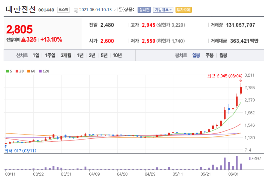 코인 부럽지 않은 대한전선, 5거래일간 주가 55% ↑. 연이자 714%…코로나 약자 두번 울리는 '약탈 대출'. 주식 이번 대한전선 어떻게 생각하시나요? 주식주식 15년 존버 결과 (요즘 핫한 대한전선) 10:56 +10. 4일 증시에서는 코스피 1개 종목과 코스닥 4개 종목이 상한가를 기록했다.